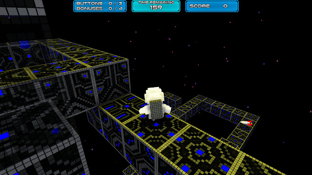 Your mission, should you choose to accept it or not, is to stomp on buttons and get the hell out of dodge. Sounds simple, right? Well the thing is, wherever is down to you is where the laws of gravity seem to think you should be headed, too. You navigate along the surface of cubes hovering in space, gathering collectibles for points, pressing buttons, locating a teleporter, and it all seems very simple until you find out that that fancy 3d perspective isn’t just for looks. You can walk off the edge, if the block you are on has no adjacent blocks, and in doing so, you rotate the entire world 90 degrees, so that you are now standing on what you would have considered the side of the block you were on.