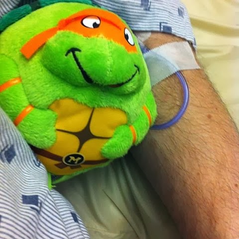 I think the important thing to take from the picture above is the kick-ass little Ninja Turtle my kids got me from the gift shop. Not the goofy-looking dude in the hospital gown.